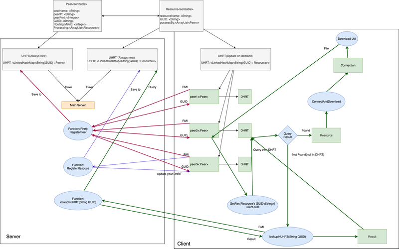 Main server takes the responsibility for maintaining GUIDs of Peers and Resources, hashes (GUIDs) was generated by using SHA-1 algorithm. Communication of pe...